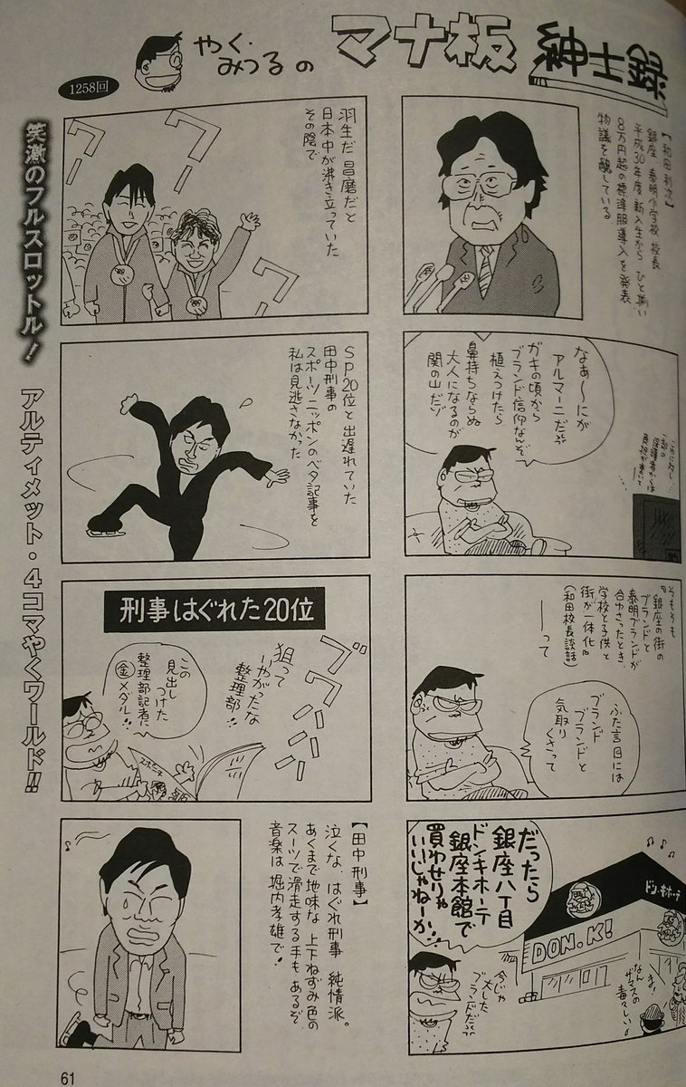 やくみつる の用例・例文集 今ではほとんどの作品においてやくみつる名義で執筆している。そのうち、選考委員の一人であるやくみつるは批判の対象になることが多い。やくみつるのように4コマ漫画家が一コマ漫画にも手を染める例もある。大洋ファンのやくみつるは、当時この件を自身の4 >やくみつる大嫌いおじさん やくみつるが好きな人なんているの? 17 無念 Name としあき (水) No そうだねx7